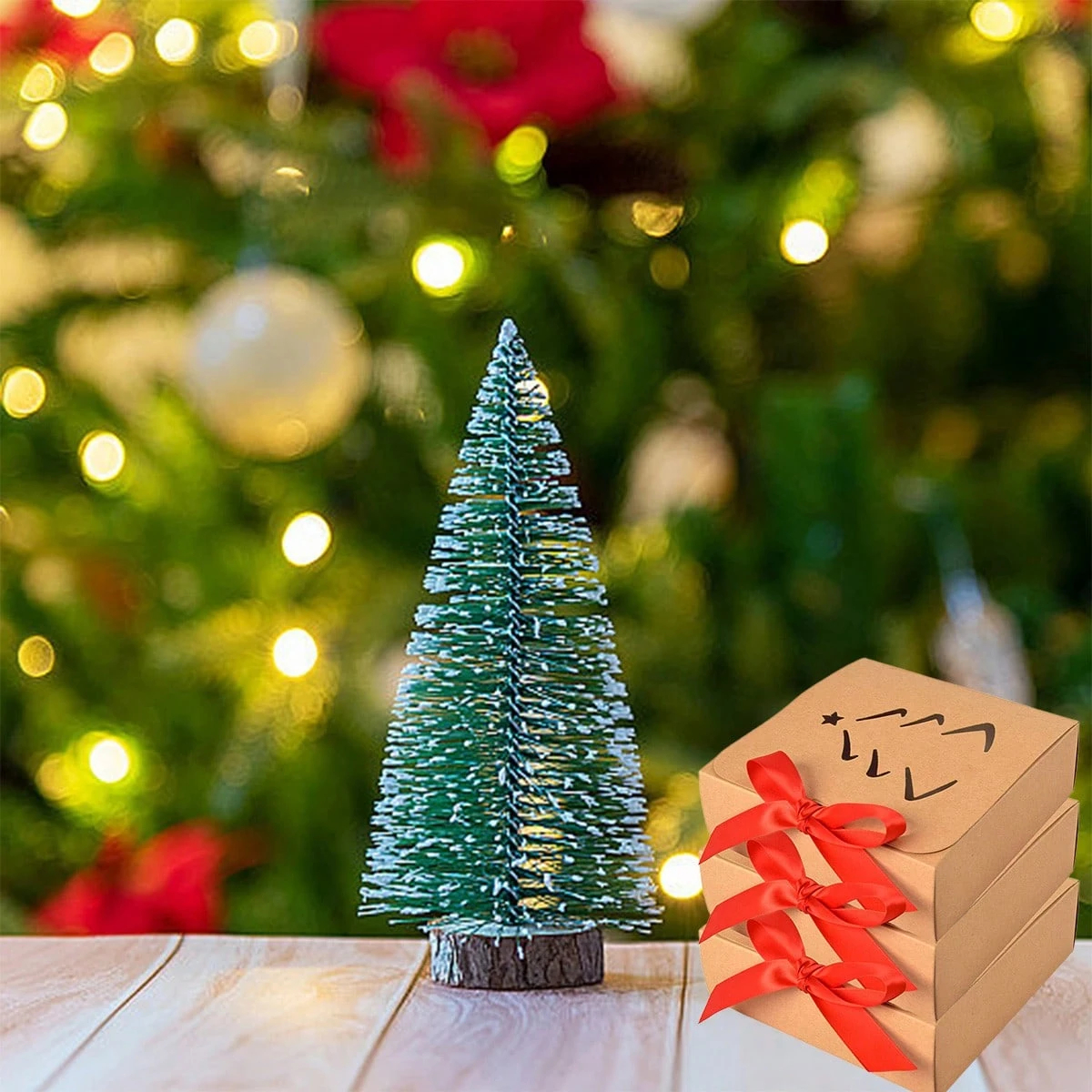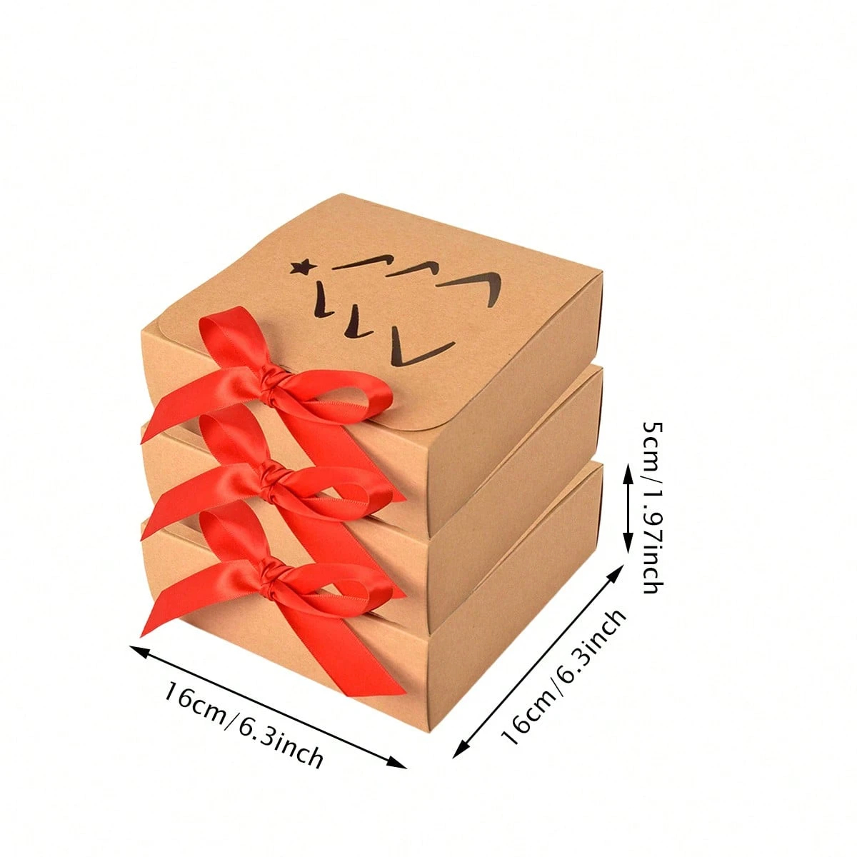 10PCS Christmas Gift Box With Lids Kraft Paper Gift Box With Ribbon Christmas Tree Present Treat Boxes For Holiday Party Favor Supplies