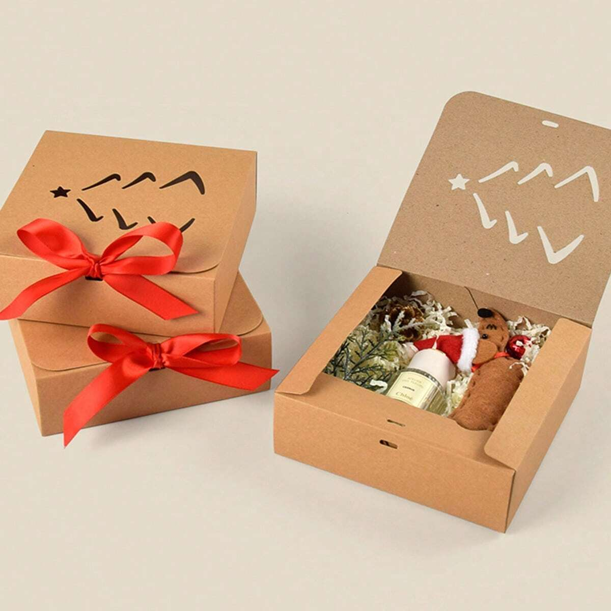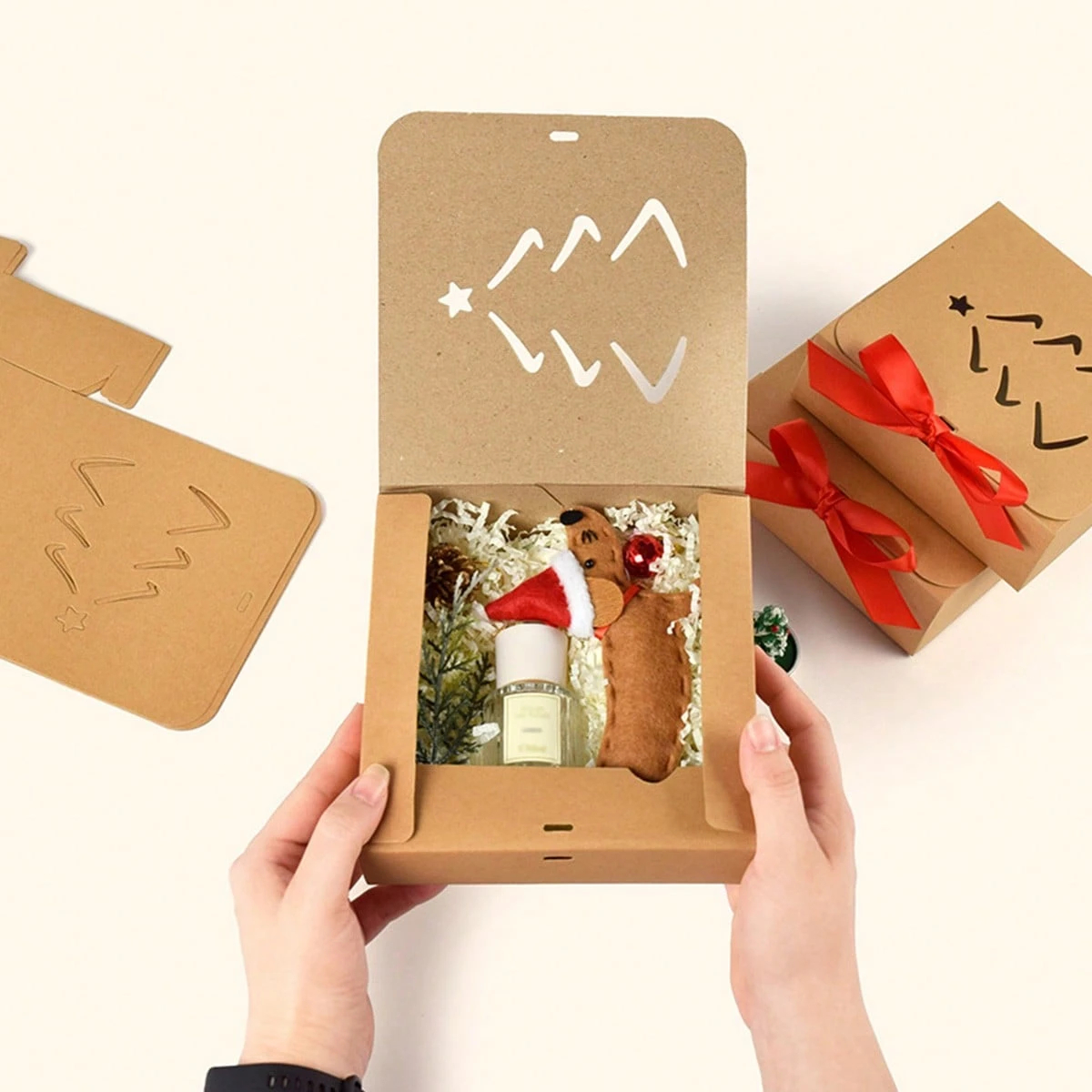Home > 10PCS Christmas Gift Box With Lids Kraft Paper Gift Box With Ribbon Christmas Tree Present Treat Boxes For Holiday Party Favor Supplies