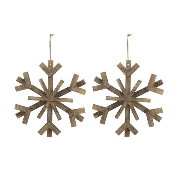 Home > 17.7inch X 17.7inch Large Fir Wood Snowflake Ornaments, Hanging Home Decor Accents For Christmas Tree, Wall Art, Holiday Display, Set Of 2
