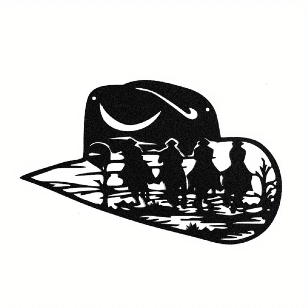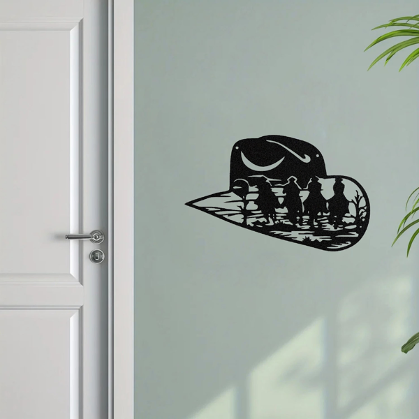 CIFbuy Aluminum Western Cowboy Hat Silhouette Wall Art Decor Country Theme Home Decoration Gift(TikTok, Temu Pick-up Service)