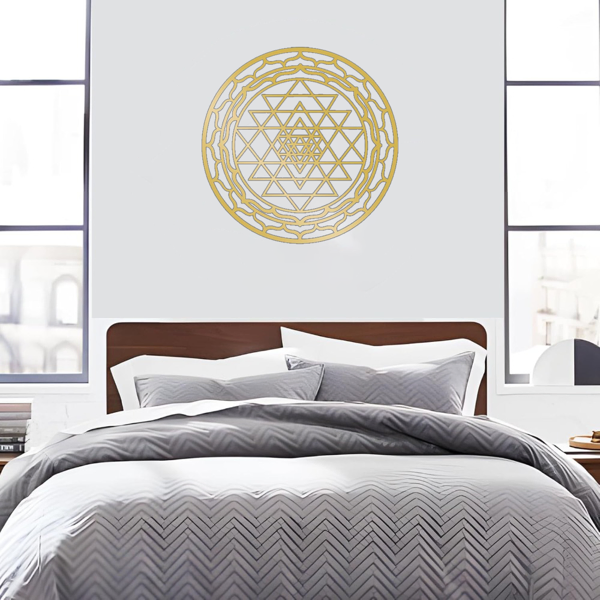 Elevate your space with our Sacred Mandala Aluminum Wall Art, a perfect blend of spiritual elegance and modern design, ideal for living rooms, meditation spaces, or as a thoughtful holiday gift.Crafted from high-quality aluminum, this exquisite piece features a detailed sacred geometry mandala design within a circular frame, promoting tranquility and serving as a focal point for meditation and spiritual reflection; its lightweight yet durable construction ensures easy hanging and long-lasting beauty as a unique decorative accent.Sri Yantra wall art, round iron decor, metal spiritual wall hanging, ZEN home accent, luxury wall decorDimensions: 40.64cm (16in) in diameterMaterial: Durable iron (metal)Style: Round single-panel wall decor