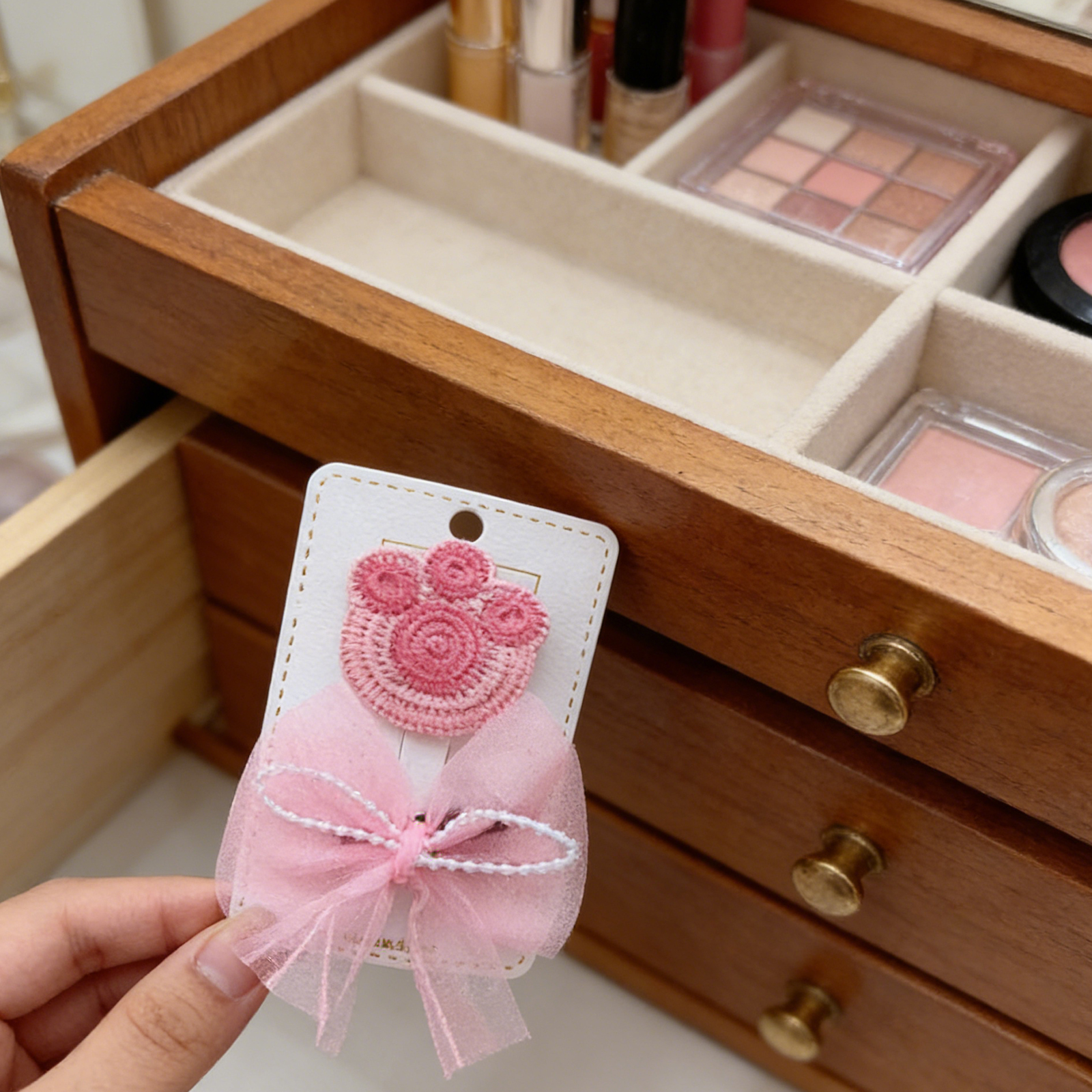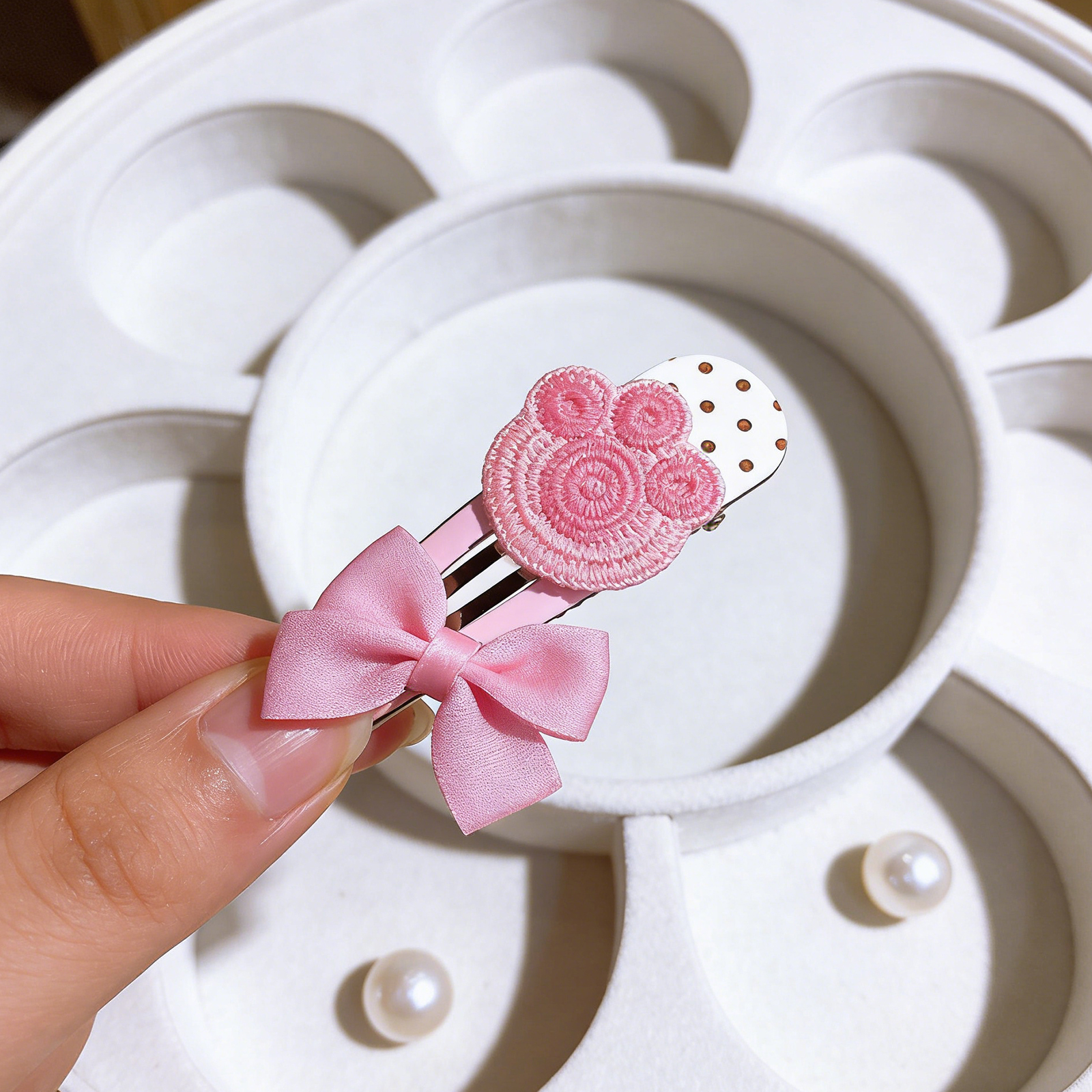 Paw Bow Hairpin Set-Pink 9627