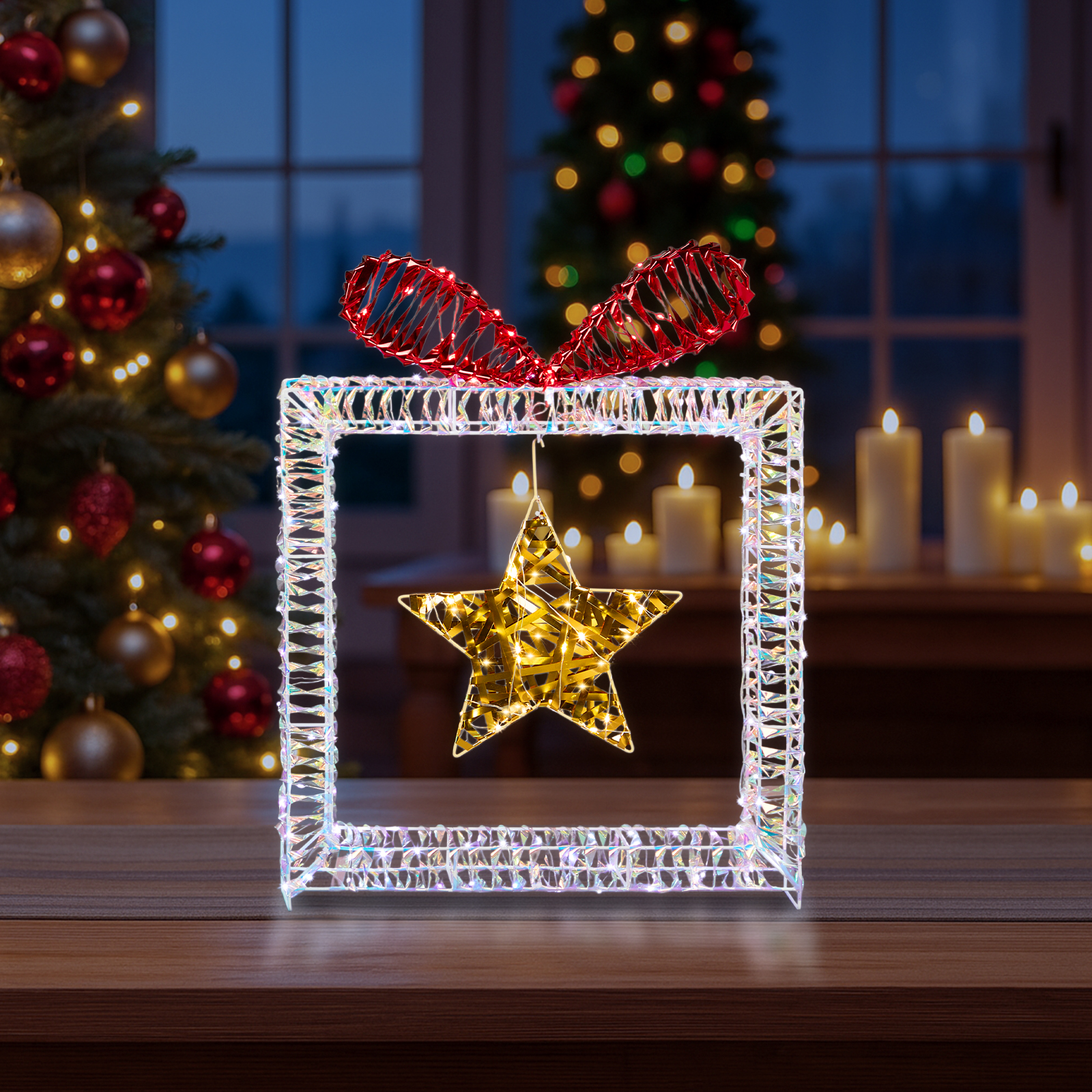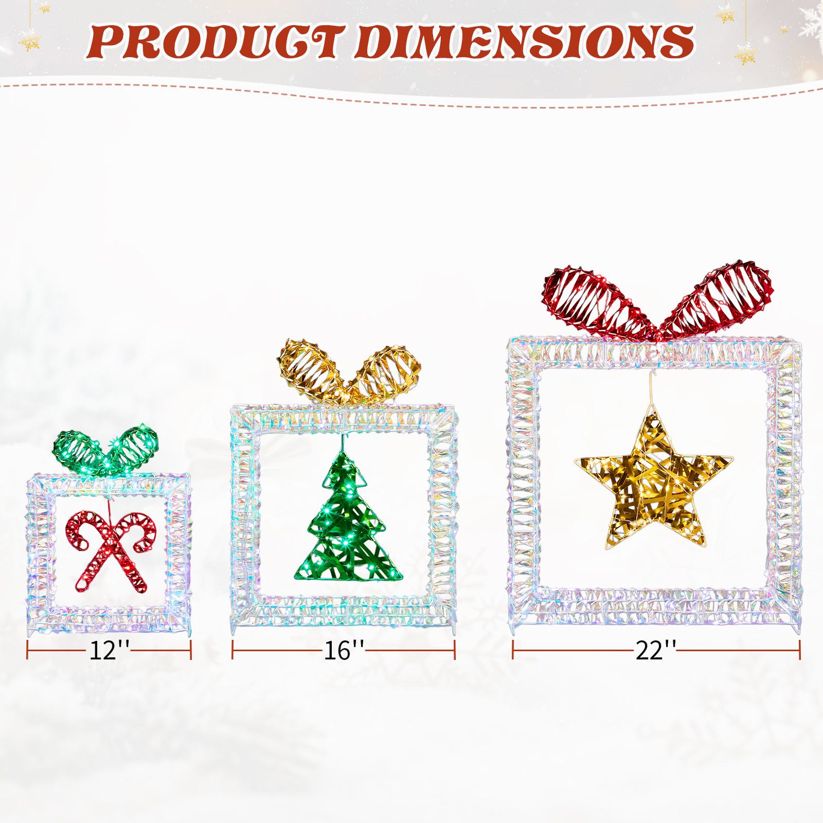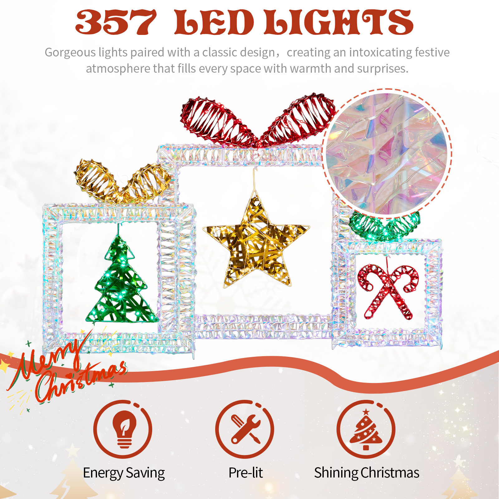 Home > Set Of 3 Lighted Iridescent Cut-out Gift Box Christmas Decorations, Pre-lit Holiday Decor With 357 White LED Lights For Xmas Outdoor Indoor Decor