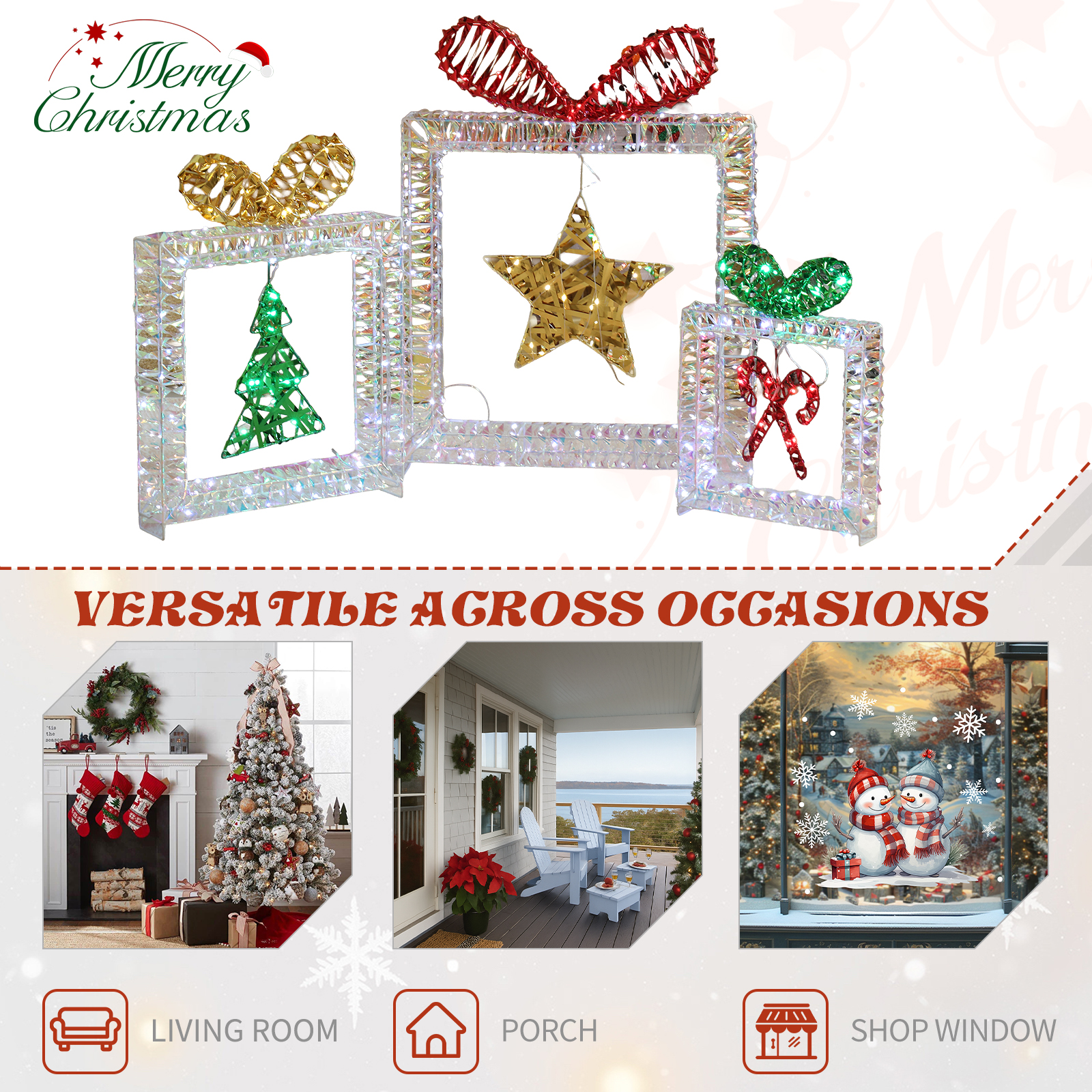 5. Perfect Holiday Decor for Indoor & Outdoor: Whether displayed in your living room, near your Christmas tree, on the porch, or in the yard, this lighted Christmas decoration adds a magical and cozy ambiance to any space. Its lightweight design makes it easy to move and position them wherever you want to spread holiday cheer.